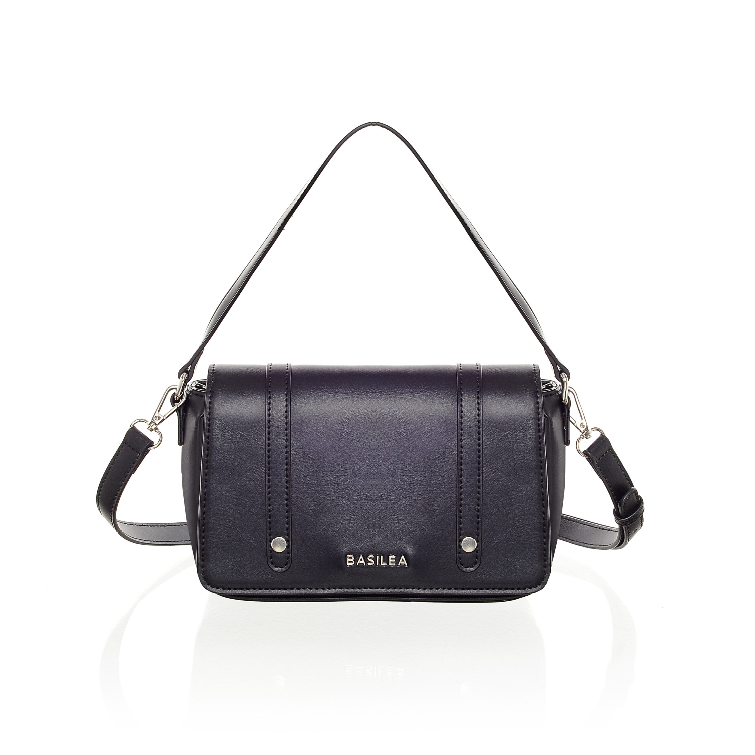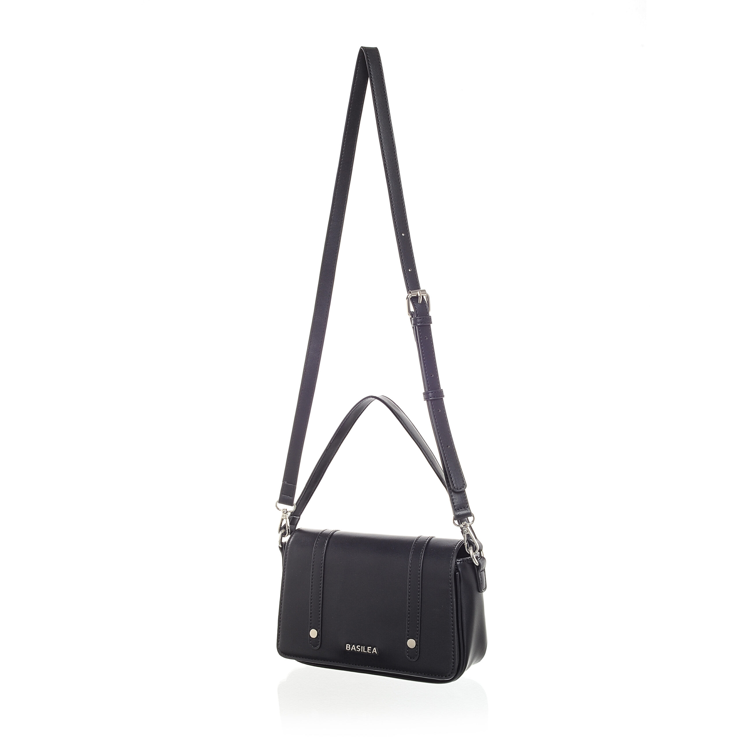 Bandolera de PU con solapa. Cuenta con correa corta y larga extraíbles.