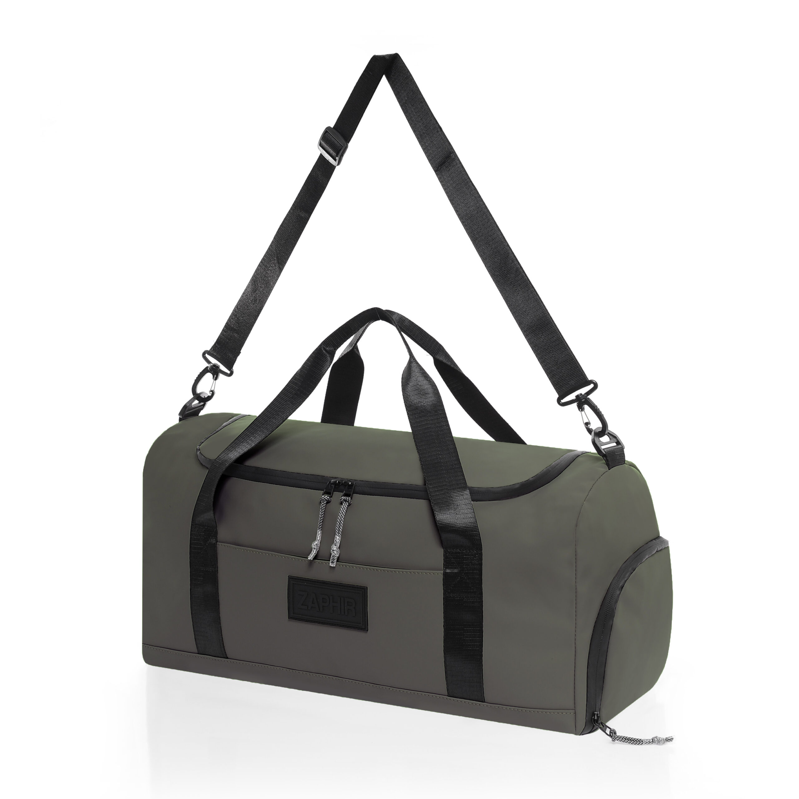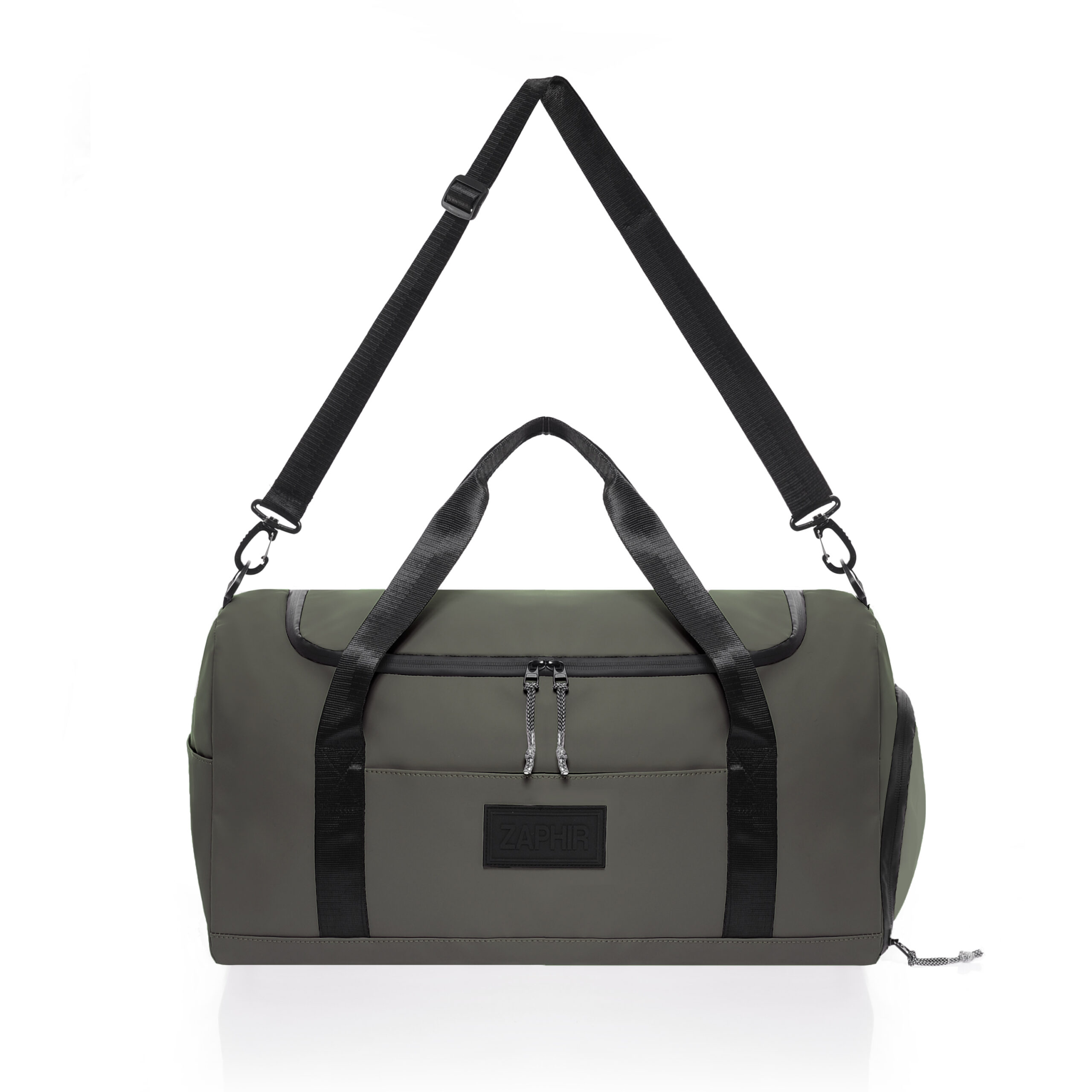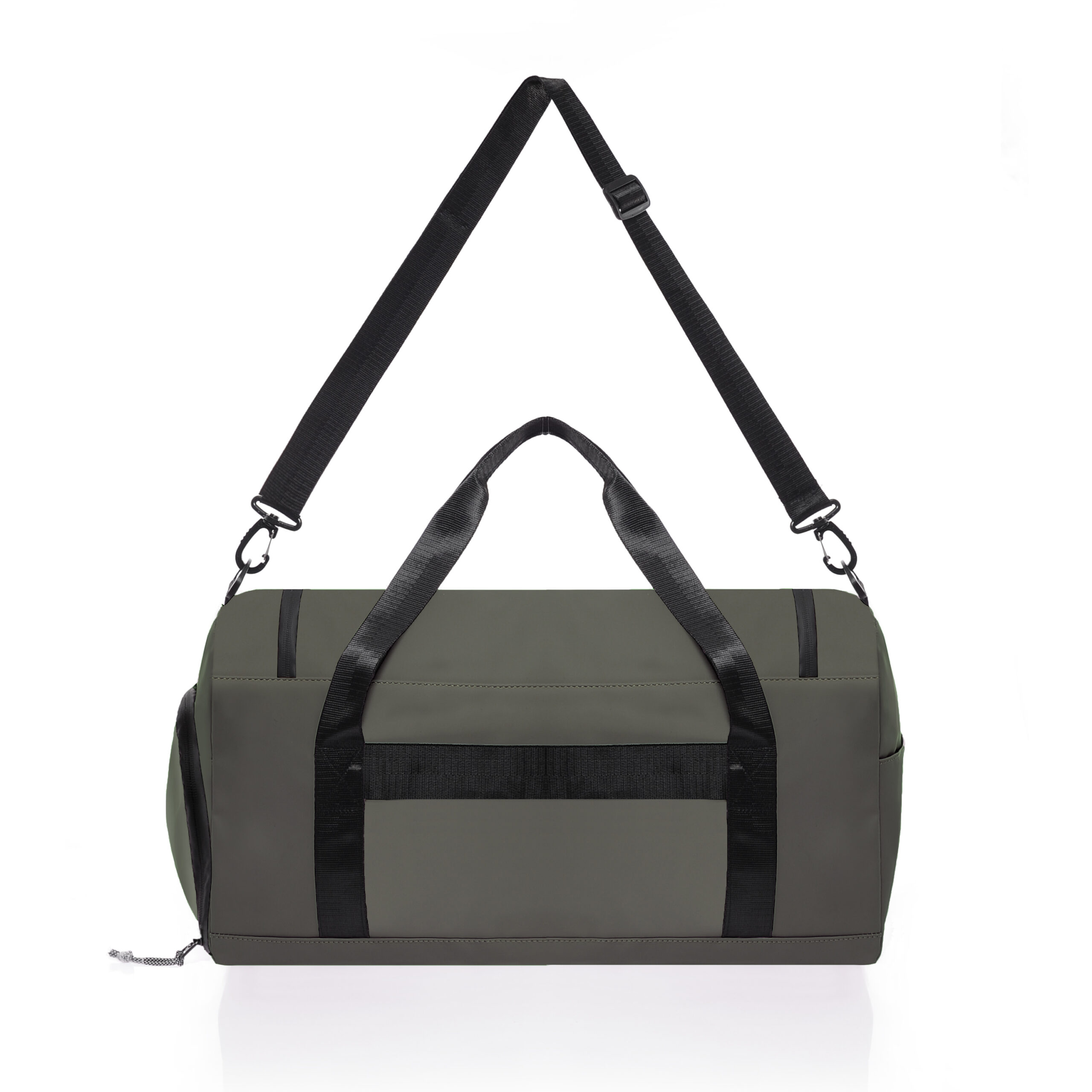 Bolso de material waterproof con botinero. Cuenta también con 1 bolsillo forrado en PVC para colocar elementos mojados, y una correa para enganchar en el carro de las valijas.